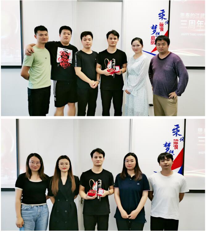 “希望大家要坚定自己,对自己要有一定的自信。同时,也要对我们自己公司有一个自信。”他在演说中还特别强调了自信的重要性。在仪式的最后,销售部各组主管和销售一组组员纷纷上台为江武先生送上诚挚的祝福,祝愿他在往后的工作中跃马扬鞭,再创佳绩。